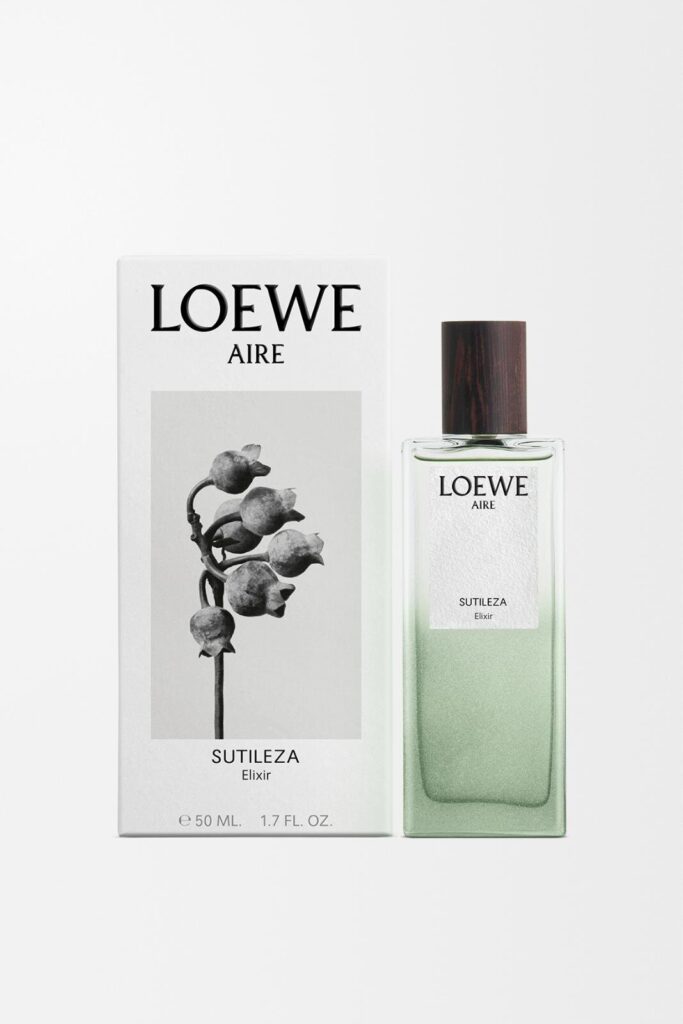 「オードゥ パルファン “ロエベ アイレ スティレサ エリクシール”」は、フローラルで繊細な香りに。洋ナシやベルガモット、レモンのフルーティでフローラルな香りを感じると、やがてオレンジフラワー、ジャスミン サンバック、マグノリアの香りへと移行。ラストは、ベチバー、サンダルウッド、ムスクの落ち着いた香りで幕を閉じる。